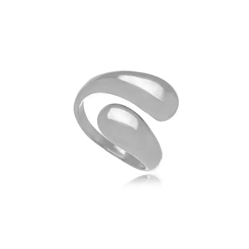 Anel Liso Duas Gotas - Regulável / Banho Ródio