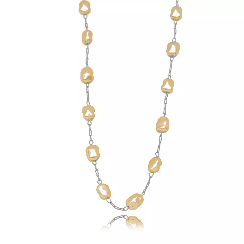 Semijoia em banho de ródio com pérolas sintéticas.